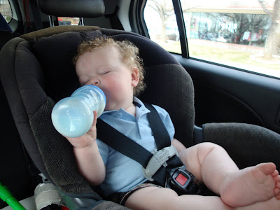 The house is coming along. Everything is done except the kitchen and one bathroom. We're hoping to move April 4th as long as we get most of the kitchen done. Kaleb and Ashton have been really good the last couple of months letting us drag them around trying to get the house ready. I think they've been to Lowes 20 times in the last couple of months. But they do love playing swords with the paint sticks there. Ashton fell asleep drinking his milk in the car Saturday.
